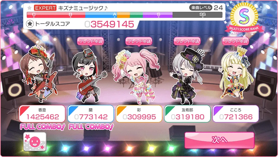 『バンドリ』のリズムゲームパートには、1人で行う”フリーライブ”の他、全国のプレイヤー達と一緒に行う”協力ライブ(マルチ)”と呼ばれるゲームモードがあります。
